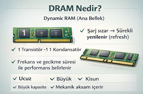 DRAM (Dynamic RAM) bilgisayardaki ana RAM’tir.