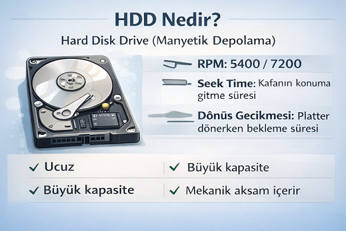 HDD (Hard Disk Drive) mekanik depolama birimidir.