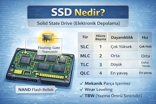 NVMe SSD → PCIe üzerinden çok daha yüksek hız